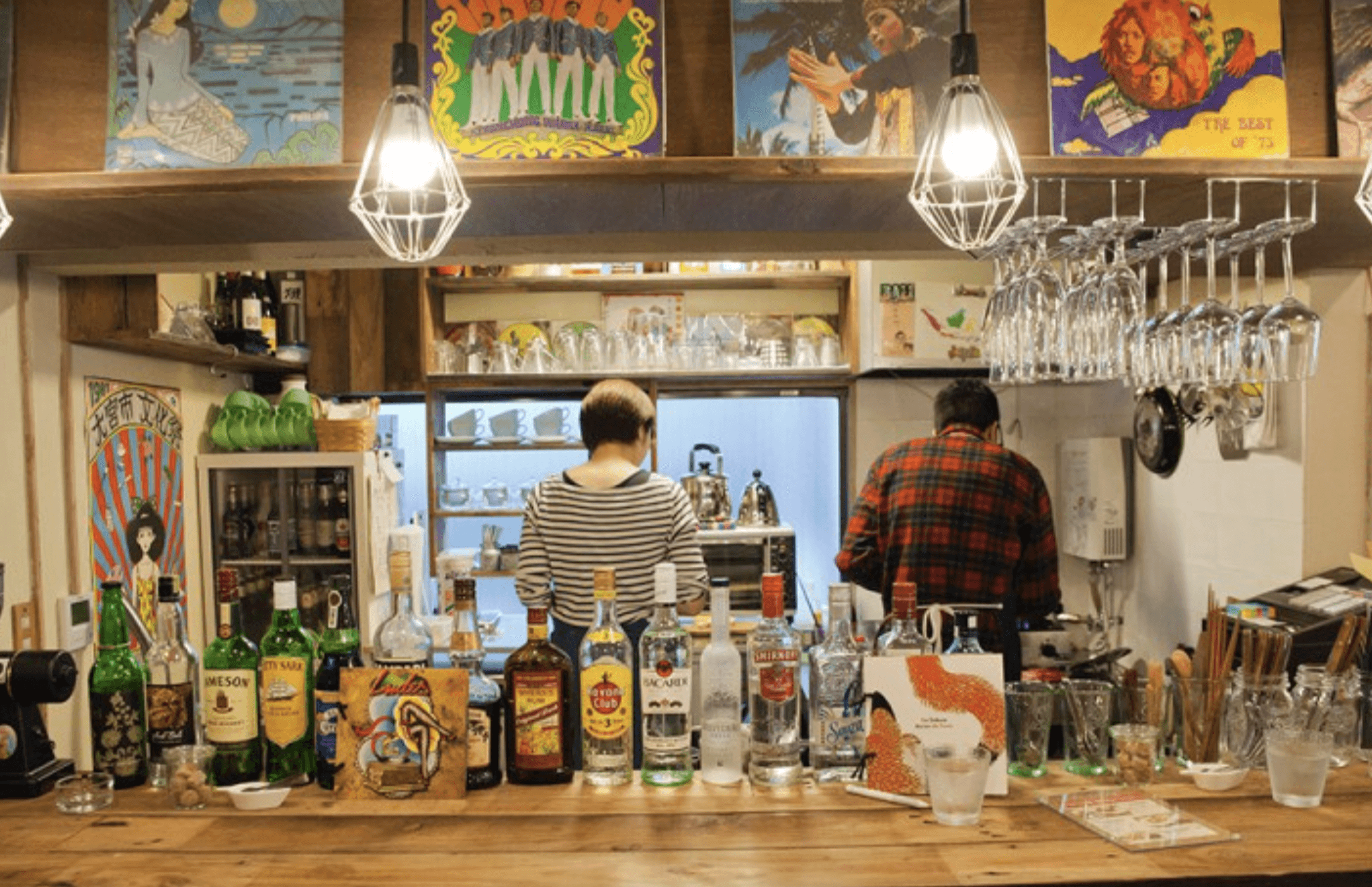 SUBstore has been operating in Koenji since 2016, combining a record store, bookstore, coffee shop, bar and live venue in one room just off the tracks. The space is also shaped by its Indonesian roots: co-owner Andhika Faisal serves Indonesian food, and the programming leans into local music and small live events.
